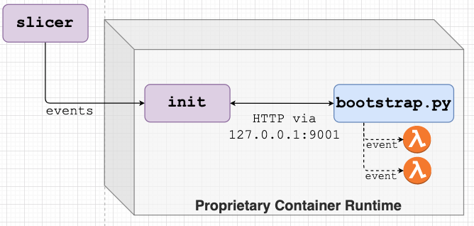 - bootstrap.py has a loop getting invocations from the init process and calls the users code to handle them (
