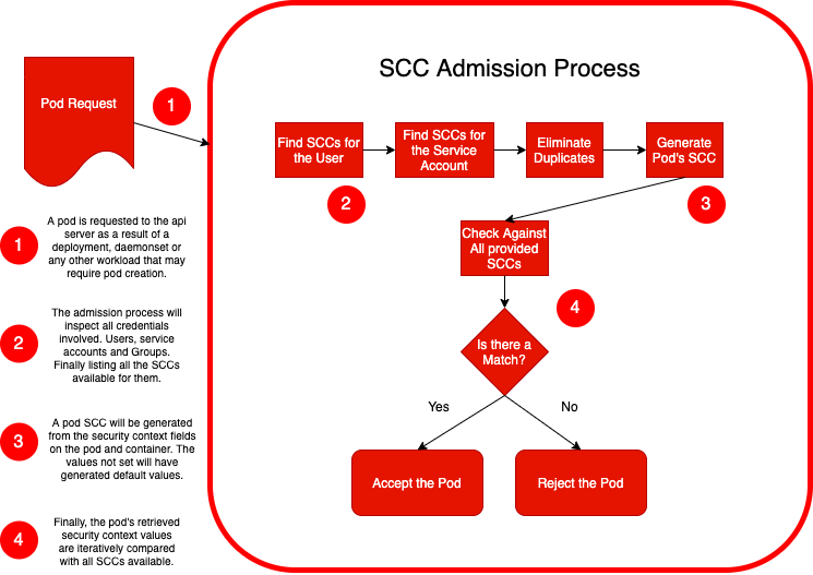 SCCs help administrators enforce security policies across the cluster, ensuring that pods are running with appropriate permissions and adhering to organizational security standards. These constraints can specify various aspects of pod security, such as: