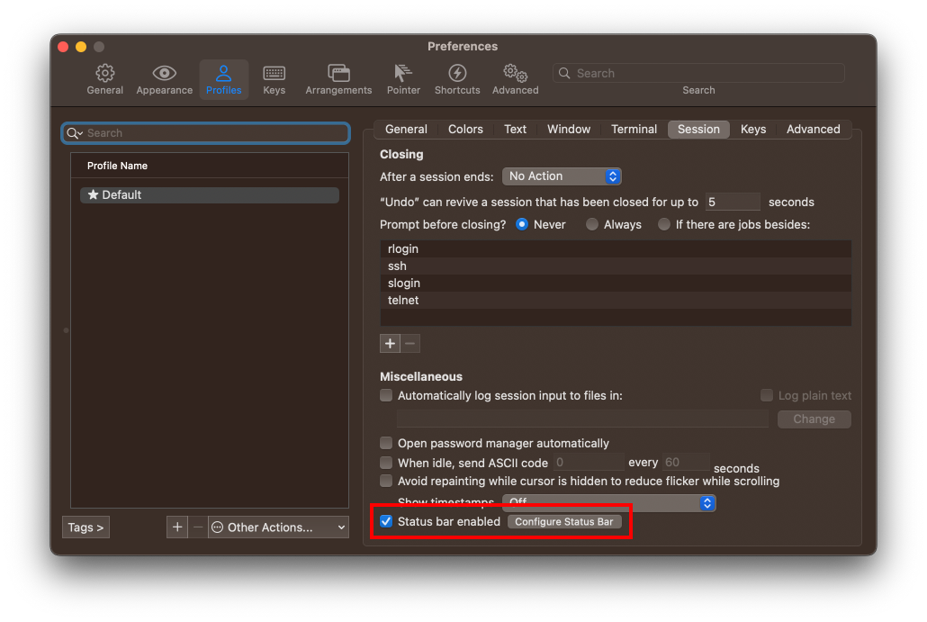[A] Usage - Status Bar